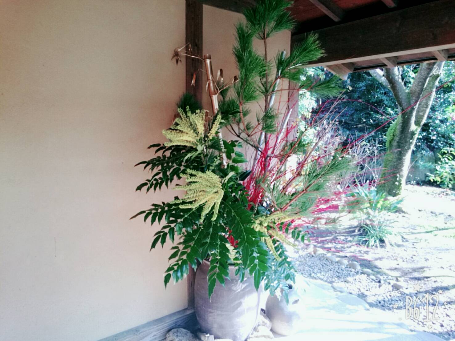 恭楽園さんのお正月の生け込み。新年のお客様を玄関でお出迎え🎶しました。
